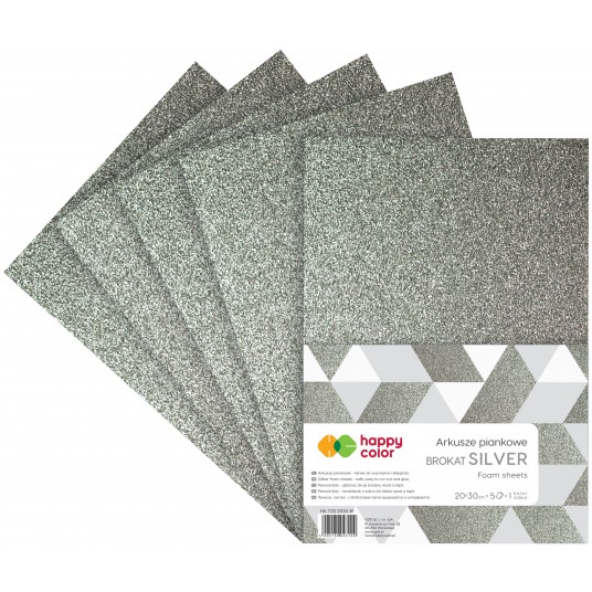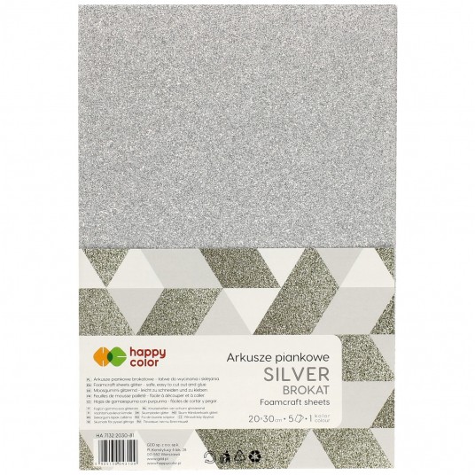 Arkusze piankowe brokatowe A4, 5 sztuk, srebrny, Happy Color