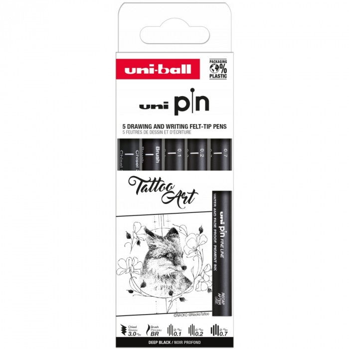 - Odkryj zestaw kreślarski PIN-200, stworzony specjalnie dla artystów tatuażu! - W skład zestawu wchodzi 5 wysokiej jakości cienkopisów o różnych grubościach i rodzajach końcówek, co pozwala na precyzyjne i kreatywne projektowanie wzorów tatuaży - Zawartość zestawu: - Cienkopis 0,1 mm – idealny do drobnych detali i precyzyjnych linii - Cienkopis 0,2 mm – doskonały do wyraźnych konturów - Cienkopis 0,7 mm – świetny do wypełnień i większych elementów - Pędzelek – umożliwia delikatne cieniowanie oraz efektowne przejścia - Końcówka ścięta 3,0 mm – stworzona do większych powierzchni i dynamicznych linii - Dzięki różnorodności końcówek, zestaw ten pozwala na pełną swobodę twórczą i dostosowanie się do indywidualnych potrzeb każdego projektanta - Niezależnie od tego, czy jesteś doświadczonym tatuażystą, czy dopiero zaczynasz swoją przygodę z projektowaniem tatuaży, zestaw PIN-200 zapewni Ci wszystkie narzędzia niezbędne do realizacji Twoich wizji artystycznych