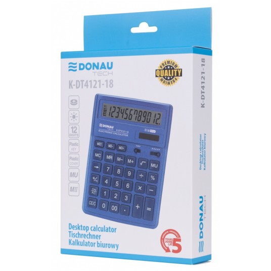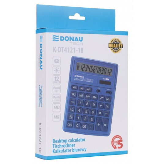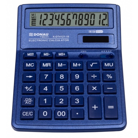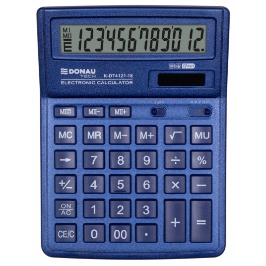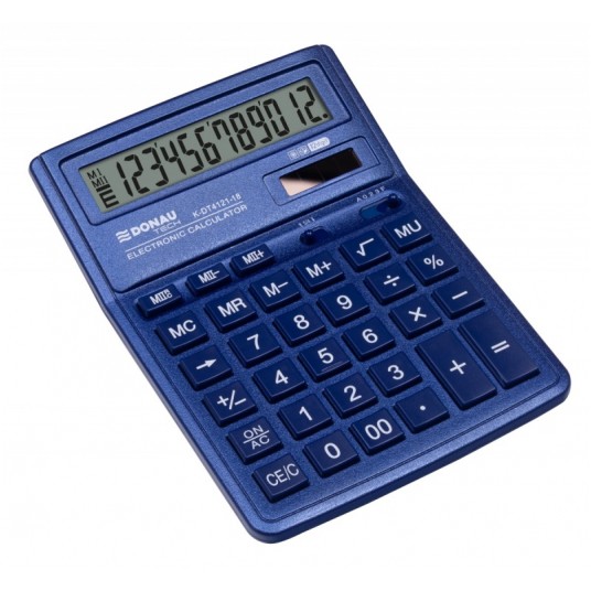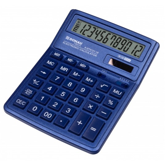 Kalkulator biurowy Donau Tech 12-cyfrowy wyświetlacz 190x143x40 mm granatowy