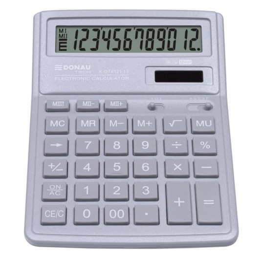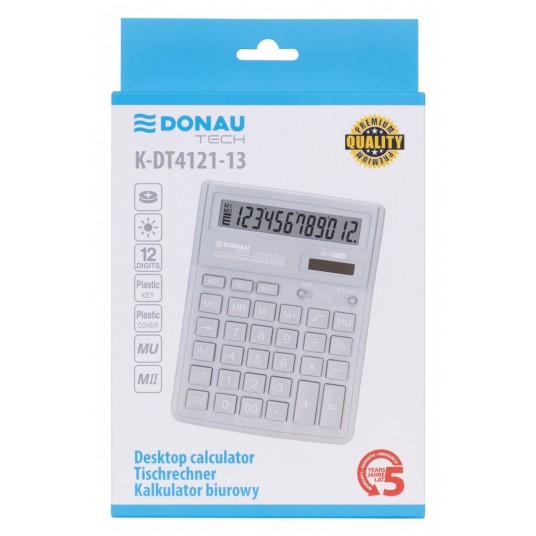 - Kalkulator biurowy z 12-cyfrowym wyświetlaczem z zasilaniem bateryjno-solarnym - Wymiary: 190 x 143 x 40 mm - Funkcja pierwiastka kwadratowego oraz obliczania procentów, obliczanie marży MU, podwójne zero, kasowanie ostatniej pozycji, podwójna pamięć, ustawienie dziesiętne, zaokrąglanie wyniku - Wyłącza się automatycznie - Instrukcja obsługi w języku polskim - 5 lat gwarancji - Kolor: jasny szary
