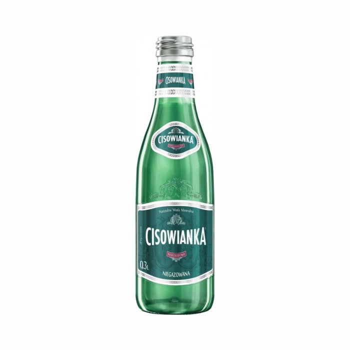 - Naturalna woda mineralna Cisowianka, średnio zmineralizowana, niegazowana zamknięta została w szklanych butelkach
