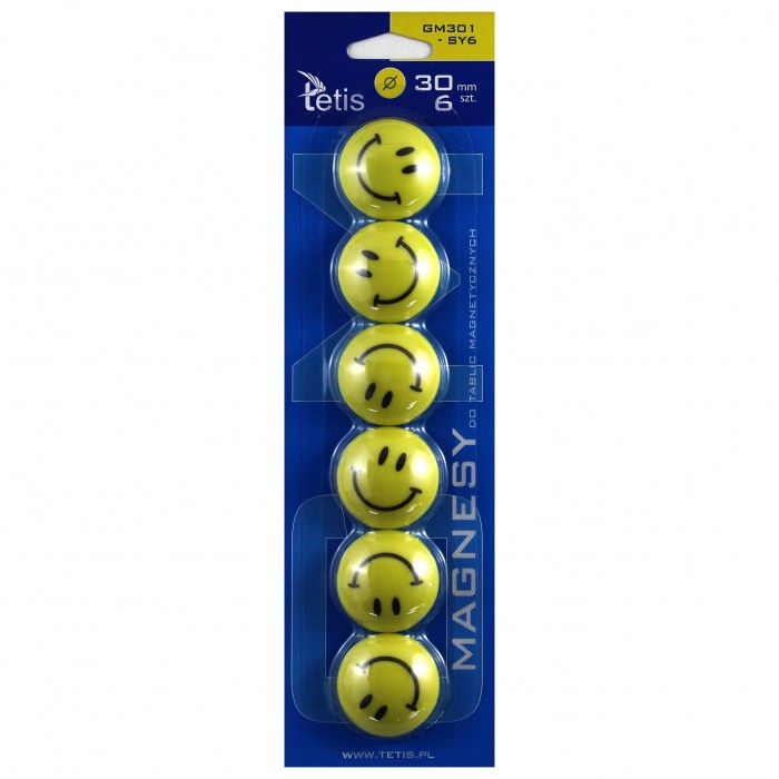 - Magnesy Tetis są niebywale mocne i trwałe, zapewniają prosty i praktyczny sposób przymocowania dokumentu lub notatki do powierzchni magnetycznych - Doskonałe do tablic i innych powierzchni magnetycznych - Pakowane na blistrze - Średnica: 30 mm - Kolor: żółty - Wzór: z uśmiechem - Ilość: 6 sztuk