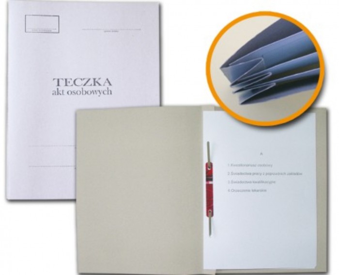 - Teczka do akt osobowych wykonana z jasnej, sztywnej tektury - Wyposażona wewnątrz w przekładki ABCD - Dokumenty wpinane za pomocą mechanizmu skoroszytowego - Jednostka sprzedaży 1 sztuka