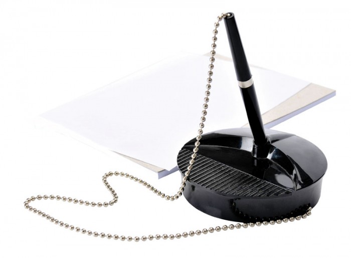 - Idealne rozwiązanie dla banków i urzędów - długopis na łańcuszku z ciężką bazą