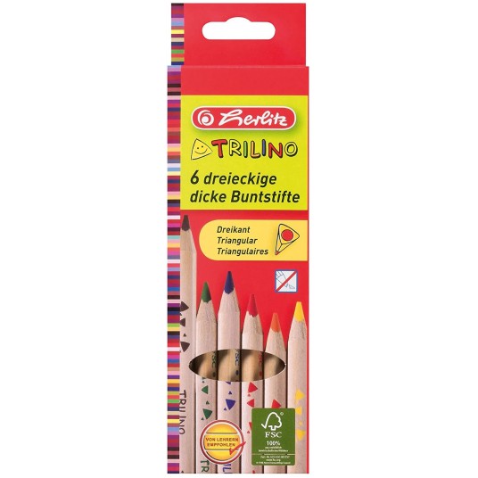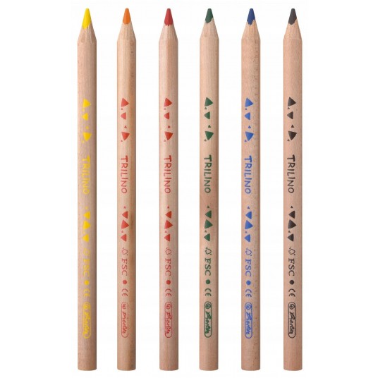- Kredki Trilino w drewnianej, nielakierowanej oprawie, 6 intensywnych kolorów.