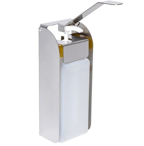 UWAGA: przedłużona dźwignia dozownika zabezpiecza użytkownika przed bezpośrednim dotykaniem jej dłonią, a tym samym przed kontaktem z potencjalnym źródłem zakażeń! Prawidłowe użytkowanie polega na naciskaniu dźwigni przedramieniem.
