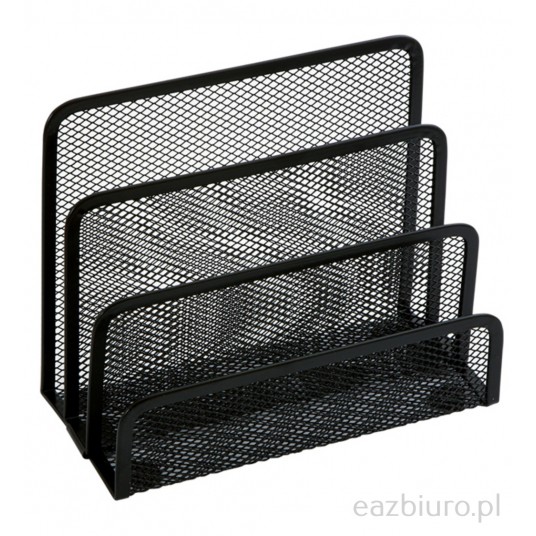 - wysokiej jakości stojak na koperty z zaokrąglonymi brzegami - stopki ochronne zapobiegają zarysowaniu biurka - idealny dla domu i biura - lakierowany metal w kolorze czarnym - 178 x 78 x 140 mm