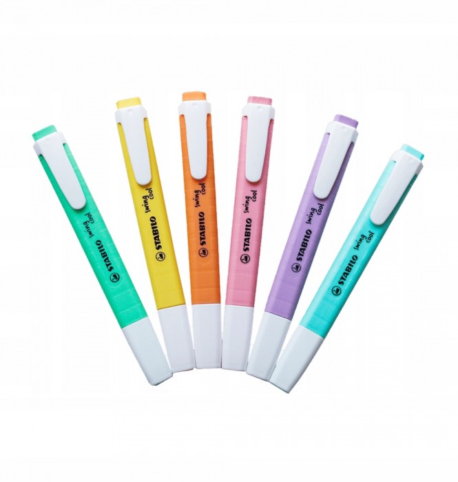 - STABILO swing cool - zakreślacz dla dzieci, młodzieży i osób które podróżują - Kieszonkowy format zakreślacza z praktycznym klipsem do zaczepiania sprawia, że nie zajmuje dużo miejsca więc można go zawsze mieć przy sobie (w torbie, piórniku, kieszeni) - Technologia Anti-Dry-Out sprawia, że pozostawiony bez skuwki nawet prze 4 godziny nie zasycha - Grubość linii 1-4 mm - Dostępny w 8 kolorach - Kolor różowy
