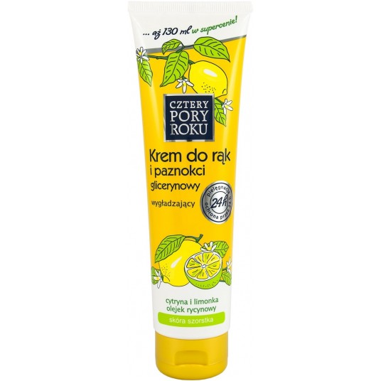 - Krem przeznaczony jest do codziennej pielęgnacji skóry dłoni - Zawiera cytrynę, glicerynę i oleje naturalne o działaniu nawilżającym i łagodzącym - Krem chroni skórę przed szkodliwym działaniem detergentów i środków niszczących naturalną barierę ochronną skóry - Dzięki lekkiej konsystencji krem szybko się wchłania, zmiękcza naskórek, a jego regularne stosowanie likwiduje suchość i szorstkość - skóry sprawiając, że staje się ona miękka, gładka i elastyczna - Pojemność: 130ml