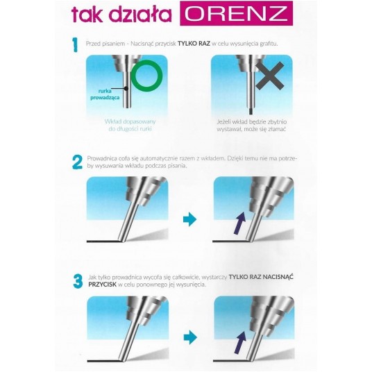 - Ołówek automatyczny Orenz PP502 to ultra precyzyjne pisanie bez konieczności wysuwania grafitu podczas pisania