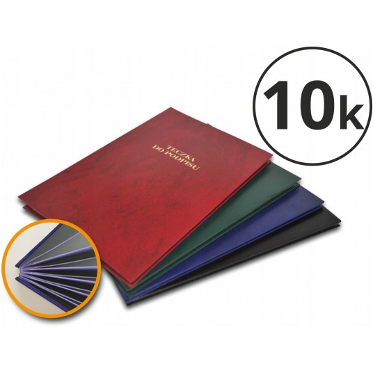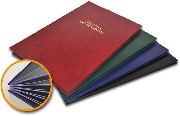 - Teczki wykonane z tektury litej, pokrytej skóropodobnym tworzywem