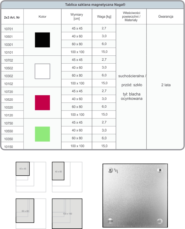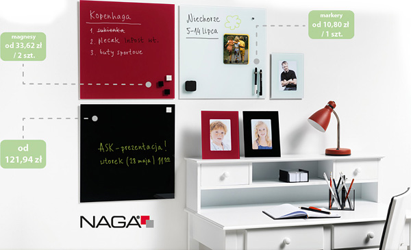 Tablice szklano – magnetyczno - suchościeralne Naga®