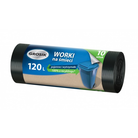 - Bardzo grube i bardzo wytrzymałe worki na śmieci Grosik LD mają pojemność aż 120 litrów - To produkt wysokiej jakości, ponieważ został wykonany z mocnej, nieprzeźroczystej folii - Możesz w nie spakować nawet ciężkie odpady bez obaw, że worek się rozerwie, a śmieci rozsypią - Na rolce znajduje się 10 worków - Wykonane są z folii LDPE - Kolor czarny - Pojemność: 120l