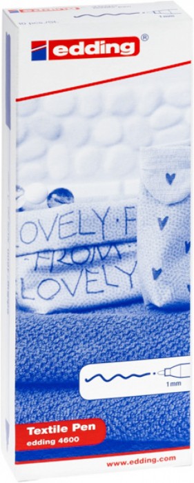 - Pisak do tekstyliów do trwałego, niespieralnego dekorowania większości jasnych materiałów jak bawełna, jedwab i len - Okrągła końcówka pisząca o szerokości 1 mm - Pigmentowy tusz na bazie wody ma neutralny zapach, jest szybkoschnący i odporny na działanie światła - Po utrwaleniu kolorów przez wyprasowanie tkaniny (bez pary), ubrania mogą być prane w temperaturach poniżej 60°C - Dostępne w 20 kolorach