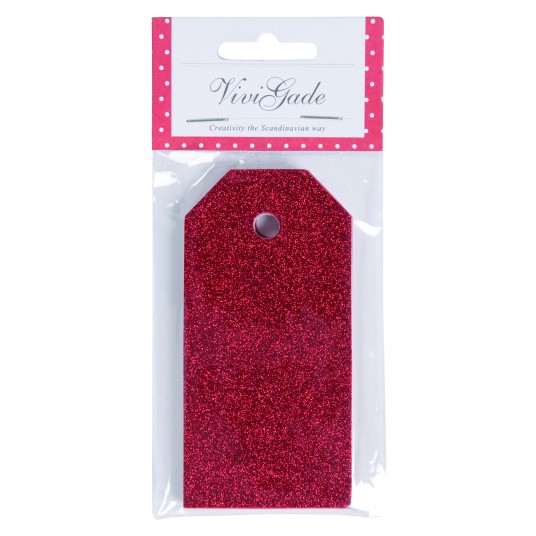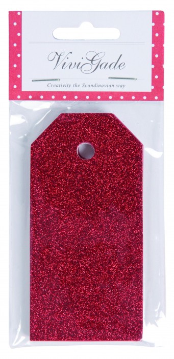 Zawieszki do prezentów czerwony brokat, 5x10cm, papier 300g, 15szt, edycja limitowana