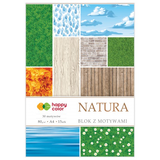 - Blok z motywami do tworzenia tematycznych dekoracji - Aż 30 wzorów w jednym bloku, dwa różne motywy na każdej kartce - Wszystkie motywy w bloku dopasowane tak, aby można było je dowolnie łączyć i tworzyć oryginalne kompozycje - Idealne do zabawy z dziećmi, do tworzenia laurek, obrazków i dekoracji - Świetnie sprawdzi się jako baza do makiet (zawiera motywy drewna, kamieni, trawy, wody i ognia) - Format: A4 - Ilość arkuszy: 15 - Ilość motywów: 30 - Gramatura: 80 g/m2 - Zastosowanie: laurki, obrazki, dekoracje, makiety - Motyw: Nature