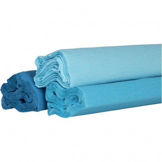 Bibuła marszczona 25x200cm, jasnoniebieski mix 3 kolorów, 3 rolki