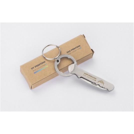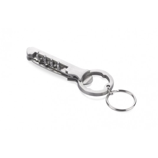 - Alco posiada 3 funkcje: brelok, otwieracz do kapsli oraz korkociąg do wina - Wykonany ze stali nierdzewnej - Zapakowany w brązowy kartonik - Wymiary: 85 x 30 x 7 mm - Materiał: stal nierdzewna - Kolor: srebrny - Opakowanie produktu: kartonik brązowy - Cena dotyczy 10 sztuk breloków z grawerem