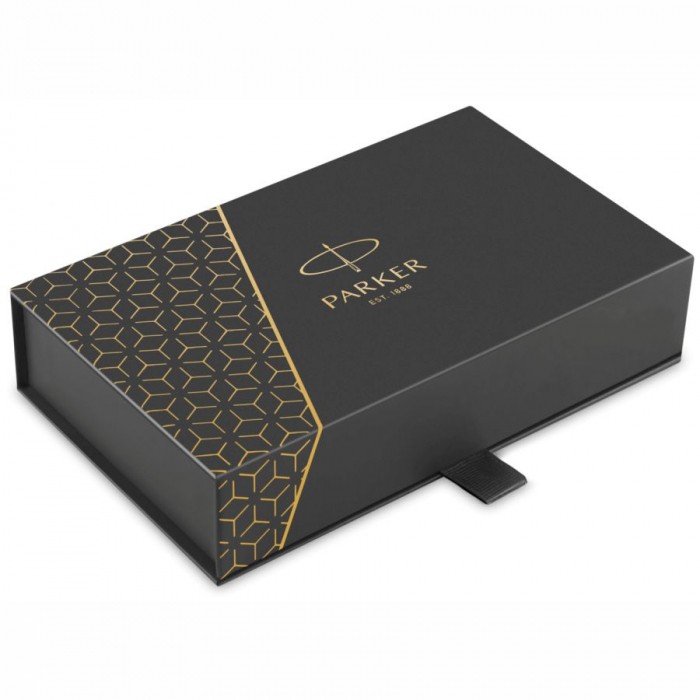 Logo: Parker w kolorze złotym, elegancko wytłoczone na powierzchni opakowania.