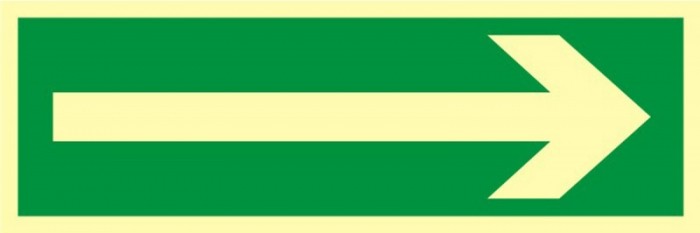 Znak tdc, kierunek drogi ewakuacyjnej