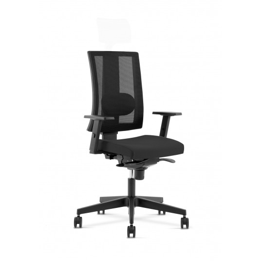 - obrotowe z mechanizmem synchronicznym FS, który zapewnia możliwość swobodnego kołysania się - regulowane podłokietniki - miękkie siedzisko tapicerowane tkaniną Era z atestem trudnopalności - oparcie siatkowe z tworzywa sztucznego z mechanizmem podparcia lędźwi - oparcie odchylające się synchronicznie z siedziskiem - możliwość blokady oparcia w 5 pozycjach - pięcioramienna podstawa krzesła wykonana z tworzywa sztucznego - samohamowne kółka do powierzchni miękkich jako standard