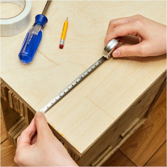 - Pociągnij za wypustkę, aby wyciągnąć miarkę i naciśnij przycisk na środku, aby zwinąć do przechowywania.