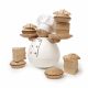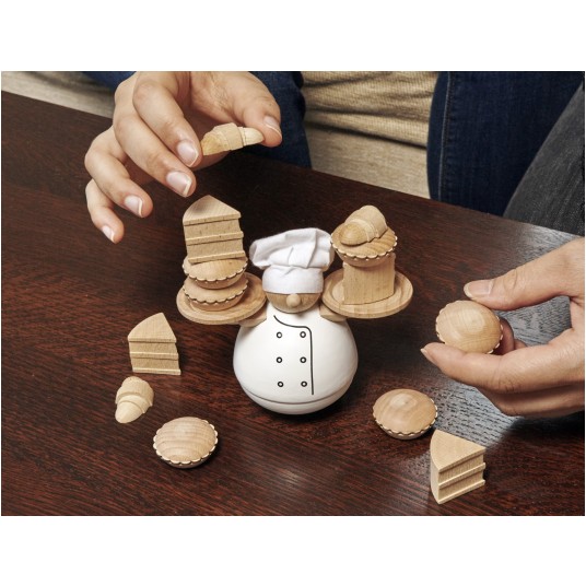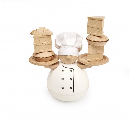 - Zawiera drewniane ciasta, ciastka i rogaliki.