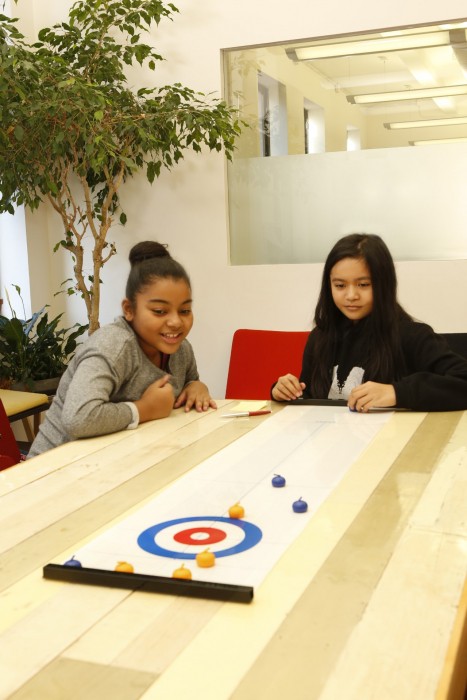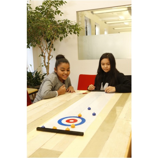 - Przetestuj swoje umiejętności i finezję z kompaktowym zestawem do gry w Curling.