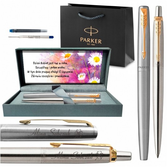 - Znakomity detal linii Jotter sprawia, że będzie to dobry prezent dla absolwentów, osób poszukujących pierwszej pracy oraz dla każdego, kto ceni dopracowany szczegół - Długopisy Parker często kupowane są przez lekarzy i pracowników służby zdrowia - Parker Jotter będzie trafionym upominkiem na wszelkiego rodzaju uroczystości i jubileusze oraz firmowym podarunkiem - Długopis i pióro dla osób zdecydowanych, szukających ponadczasowych rozwiązań - Stalowy korpus długopisu z szlachetnej, nierdzewnej stali - Wykończenia platerowane 23-karatowym złotem - Długopis wyposażony w przyciskowy mechanizm wysuwania wkładu - Pióro z stalową stalówką o grubości M - W zestawie eleganckie, ozdobne pudełko na 2 produkty