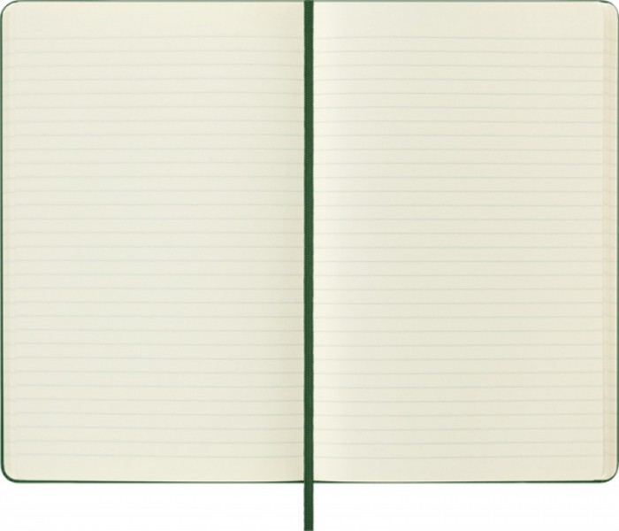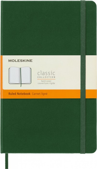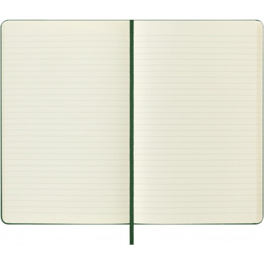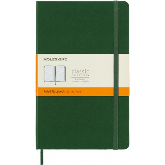 Notes Moleskine Classic L (13x21cm) w linie, twarda oprawa, myrtle green, 240 stron Kolekcja notesów w różnych kolorach i wielkościach znana na całym świecie. Dostępna w twardej oprawie w bogatej kolorystyce dla wprowadzenia kolorów do dnia codziennego. Do produkcji został użyty standardowy bezkwasowy papier certyfikowany FSC®- w kolorze kości słoniowej. Zrobiony z barwionej masy, doskonale nadaje się do zapisywania notatek długopisem oraz ołówkiem. Rozmiar: 13x21 cm (duży). Rodzaj: linie Okładka: twarda Kolor: myrtle green Liczba stron: 240 Dodatkowo: -zamykany na gumkę -wstążkowa zakładka -elastyczna kieszeń wewnątrz