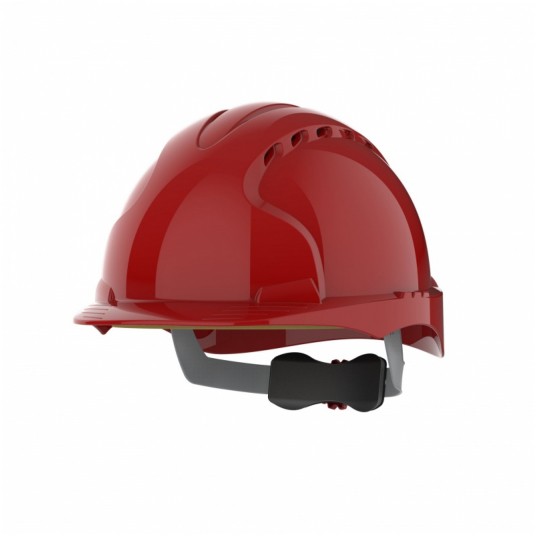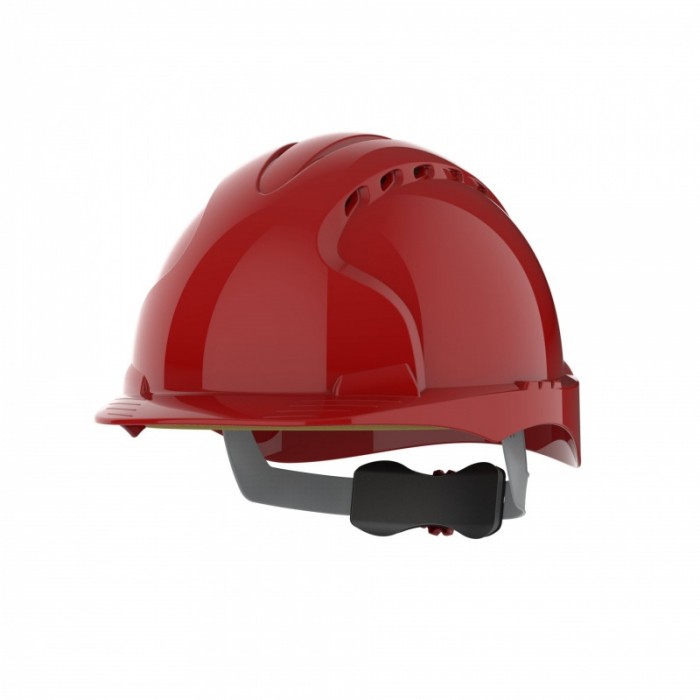 Hełm ochronny zgodny z normą EN 397 dotyczącą hełmów przemysłowych Hełm wentylowany Hełm oferujący bardzo dobrą ochronę i przeznaczony do pracy przy dużym ryzyku spadających przedmiotów jak np: budowy, wyburzenia Mocna skorupa wykonana z tworzywa HDPE Komfortowa, 6-punktowa więźba tekstylna 3 punktowa regulacja głębokości więźby Regulacja obwodu pokrętłem Revolution Dwa gniazda boczne do montażu akcesoriów jak ochronniki słuchu czy ochrona wzroku Możliwość nadruków w zależności od ilości zamawianych hełmów Kolor: czerwony