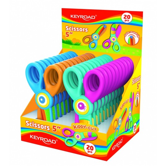 nożyczki szkolne idealne dla najmłodszych uczniów posiadają bezpieczną, okrągłą końcowkę, która minimalizuje ryzyko skaleczeń brak metalowego ostrza sprawia, że są bezpieczne dla małych rączek wygodny uchwyt zapewnia komfort podczas użytkowania model: kiddly-cut rozmiar: 5" pakowane na displayu kolor: mix kolorów
