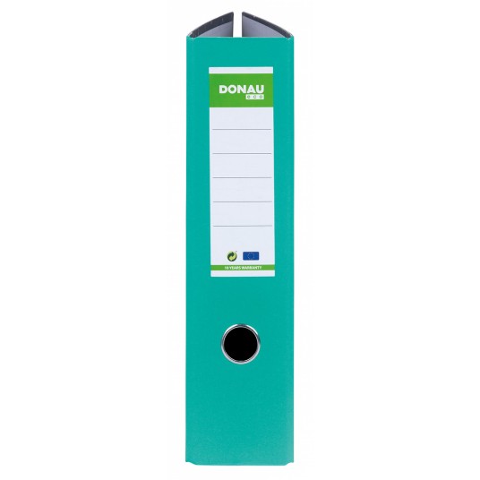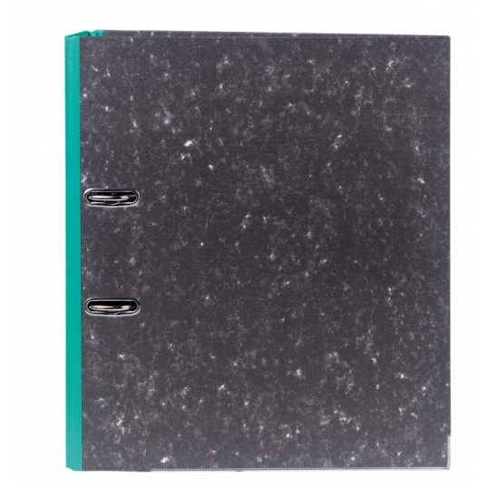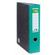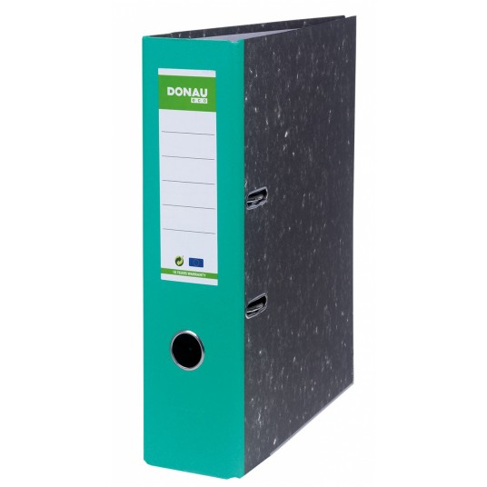 ekonomiczny segregator wykonany z tektury o grubości 2,2mm i gramaturze 1400gsm, wyposażony w dolną listwę wzmacniającą wewnątrz wyklejka papierowa o szarym zabarwieniu metalowy mechanizm i metalowa dźwignia wysokiej jakości z dociskaczem wzmocniony otwór na palec szerokość grzbietu: 80mm wymiary: 80x320x300 mm 5 lat gwarancji na mechanizm dźwigniowy opakowanie 10 szt. kolor: zielony