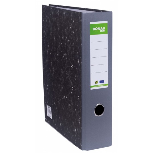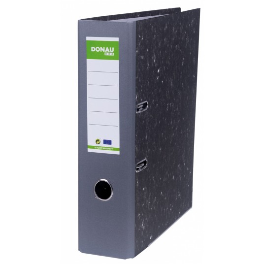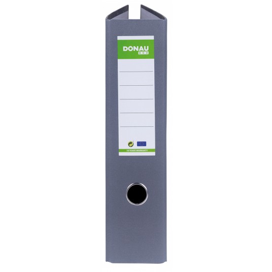 ekonomiczny segregator wykonany z tektury o grubości 2,2mm i gramaturze 1400gsm, wyposażony w dolną listwę wzmacniającą wewnątrz wyklejka papierowa o szarym zabarwieniu metalowy mechanizm i metalowa dźwignia wysokiej jakości z dociskaczem wzmocniony otwór na palec szerokość grzbietu: 80mm wymiary: 80x320x300 mm 5 lat gwarancji na mechanizm dźwigniowy opakowanie 10 szt. kolor: szary