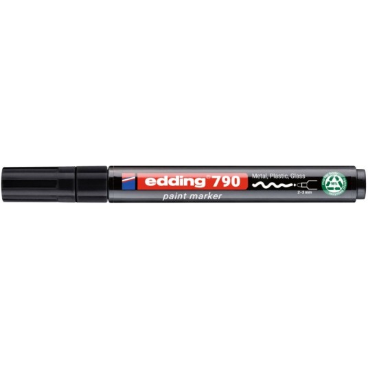 - Marker olejowy do trwałego, wysoce kryjącego znakowania gładkich materiałów, jak np. metal, szkło, plastik doskonale nadaje się również do ciemnych i przezroczystych powierzchni - Okrągła końcówka pisząca o grubości 2-3 mm - Tusz na bazie alkoholu jest szybkoschnący, światłotrwały i wodoodporny - Bezwonny tusz bez dodatku toluenu/ksylenu - Obudowa wykonana z plastiku pochodzącego z recyklingu - Co najmniej 96% całkowitego plastiku użytego w markerze pochodzi z recyklingu poużytkowego - Grubość linii pisania: 2-3 mm - Kolor: czarny