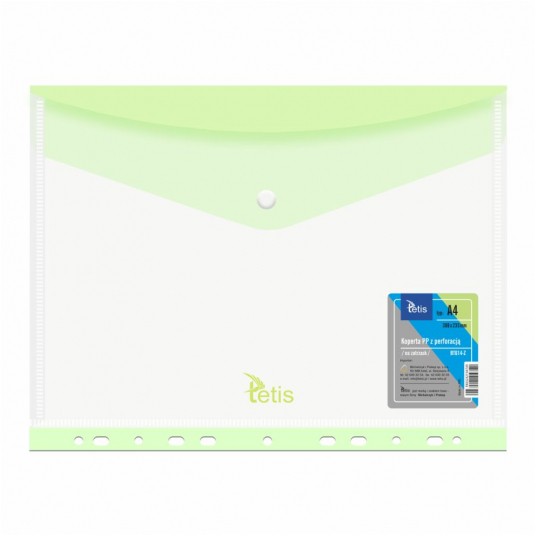 Koperta PP A4 z perforacją Tetis BT614 zielona