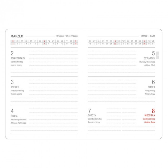 - Widok bieżącego miesiąca na każdej rozkładówce