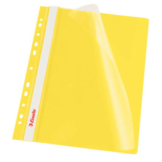 - Skoroszyt formatu A4 z paskiem multiperforowanym umożliwiającym wpięcie do każdego rodzaju segregatora - Tylna okładka kolorowa, przednia - przezroczysta - Wysuwany, papierowy pasek do opisu zawartości - Wykonany z folii PCV - Pakowany po 10 szt. w folii