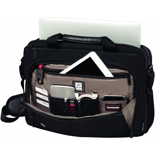 - Usztywniona przegroda na laptopa 16"/41cm oraz dedykowana kieszeń na tablet/czytnik 10"/25cm z wyściółką zapobiegającą zarysowaniom