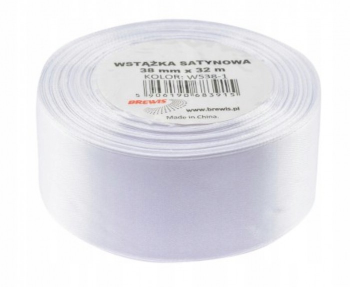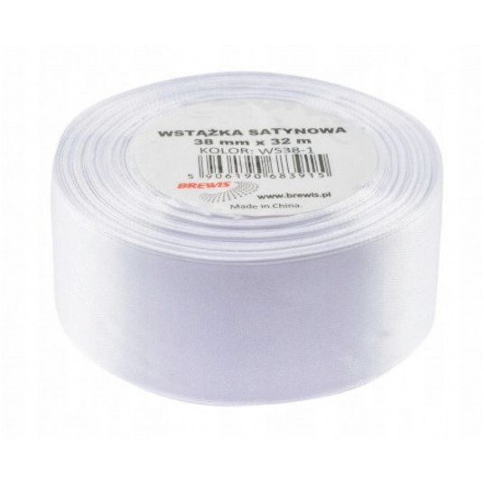 Wstążka satynowa Brewis 38 mm biała