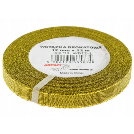 Wstążka brokatowa Brewis 12mm x 22m złoty