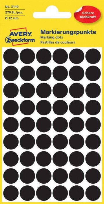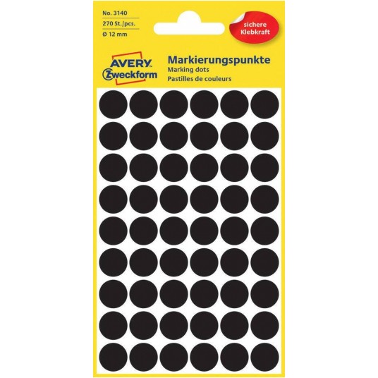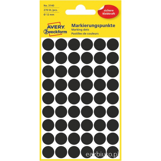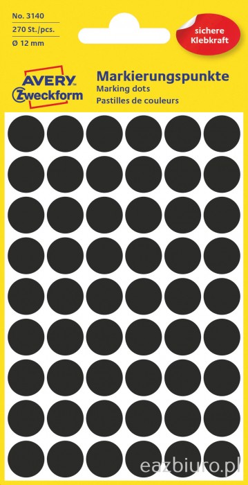 Etykiety kółeczka do zaznaczania, zf3140 czarne 12mm