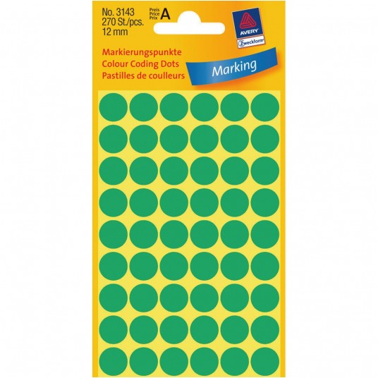 Etykiety kółeczka do zaznaczania, zf3143 zielone12 mm