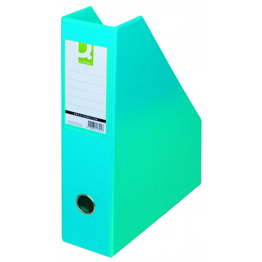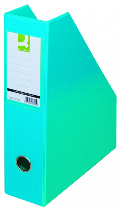 - wykonany z tektury o grubości ok. 2mm pokryte folią PVC - pojemność: ok. 750 kartek o gramaturze 80gsm - posiadają dwie kieszonki opisowe, co umożliwia uniwersalne wykorzystanie pojemnika - składany - bardzo prosty w montażu, zabezpieczony wewnętrznym rzepem - wymiary: 76x317x250mm - kolor jasnoniebieski