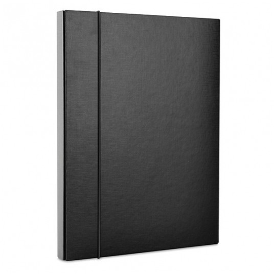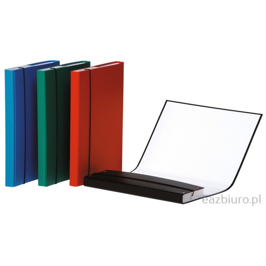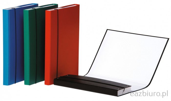 - Zamykana, okrągłą gumką wzdłuż teczki