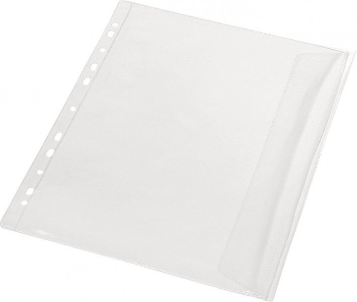 - Wykonana z niezwykle mocnej folii PVC lub PP- Wysoka przezroczystość i elastyczność - Boczna klapka zabezpieczająca włożone dokumenty pojemność do 250 kartek- Europerforacja do wpinania w segregator