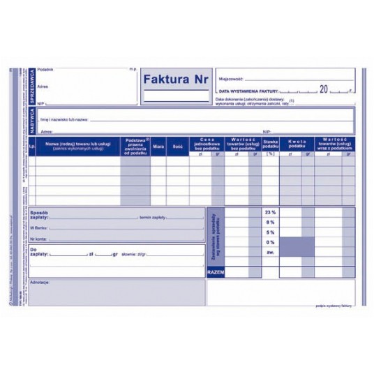 - Zastosowanie: faktury i inne dokumenty wynikające z przepisów o podatku od towarów i usług