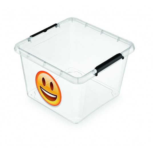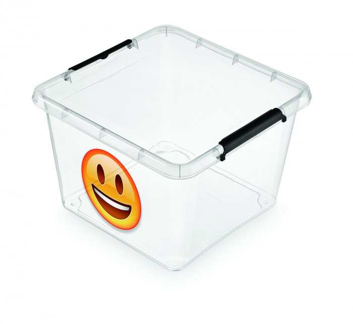 - Simple Store Box - uniwersalny pojemnik do przechowywania, wykonany z wysokiej jakości tworzywa sztucznego - Nie tylko ułatwia porządkowanie garderoby, ale również dzięki stylowemu wyglądowi prezentuje się w każdym pomieszczeniu - Na jednej ze ścian znajduje się emotikon - Pojemność: 1-32l - Wymiary: 390 x 390 x 260mm - Kolor: transparentny