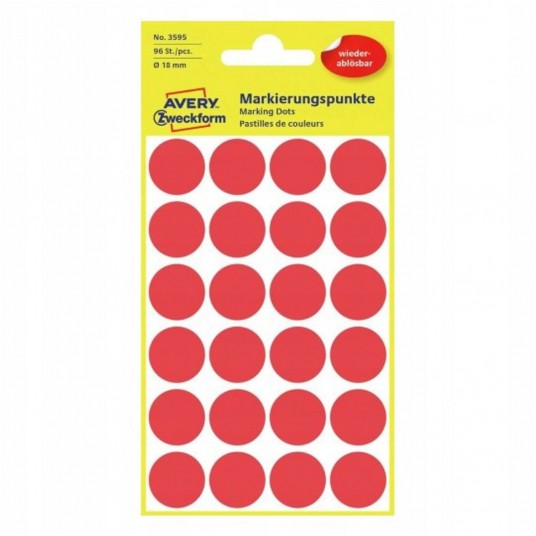 Usuwalne, kolorowe kółka do zaznaczania Avery Zweckform; 96 etyk./op., o18 mm, czerwone