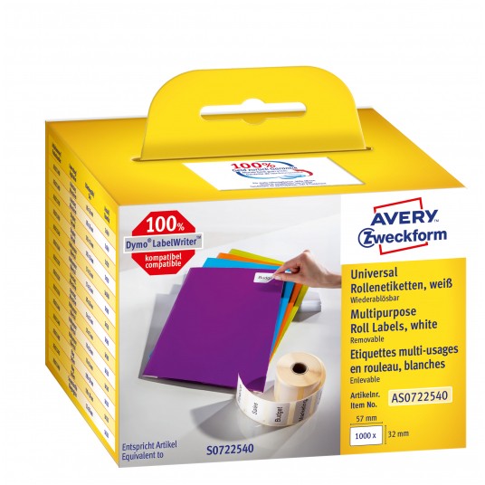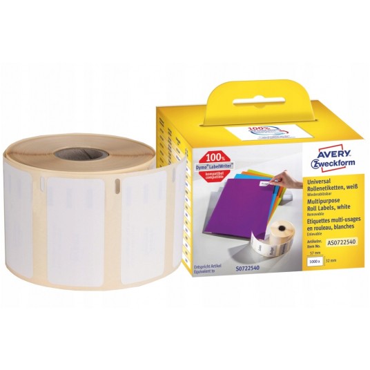 Etykiety uniwersalne Avery Zweckform w rolce do drukarek termicznych; 1000etyk./1rolka; 32 x 57 mm, usuwalne, białe